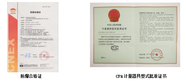 符合最新國標(biāo)并取得CMC計量器具生產(chǎn)許可證、防爆認(rèn)證等資質(zhì)