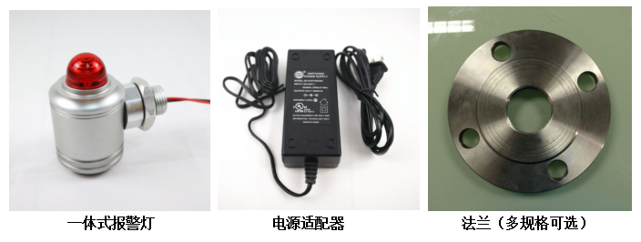 管道安裝不銹鋼螺紋焊座或法蘭(需注明管道或法蘭尺英寸,如DN50、DN15...)、防雨罩、24VDC或220AC采樣泵(采樣距離10米)、真空泵(采樣距離大于40米)、24V開關(guān)電源、減壓閥、流量計(jì)。