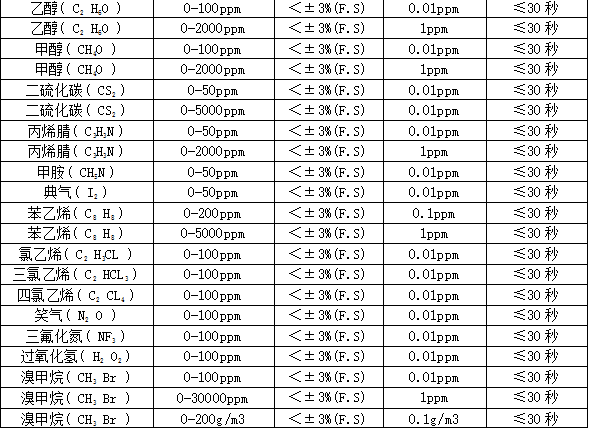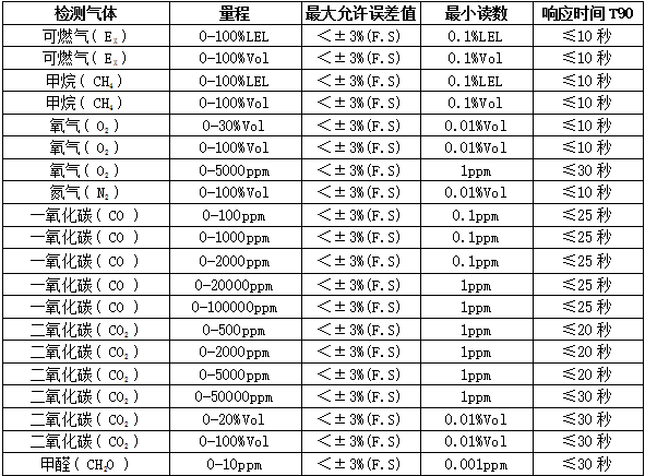 響應(yīng)時(shí)間:T90≤30秒恢復(fù)時(shí)間:≤30秒
