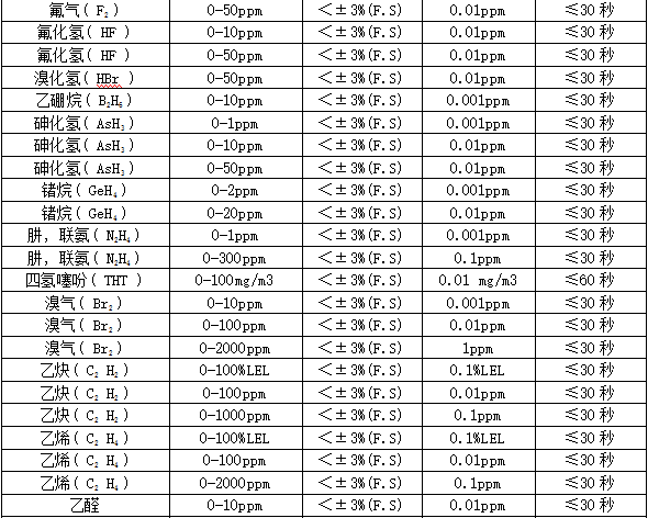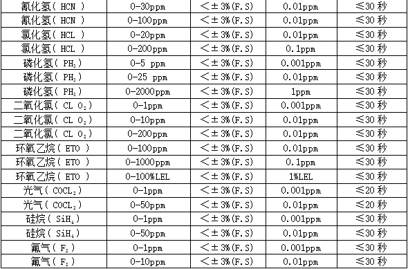 分 辨 率:0.01ppm(0~100 ppm),0.1ppm(0~1000 ppm),1ppm(0~1000 ppm以上),0.1%LEL、0.01%Vol。