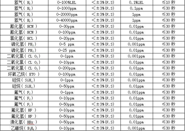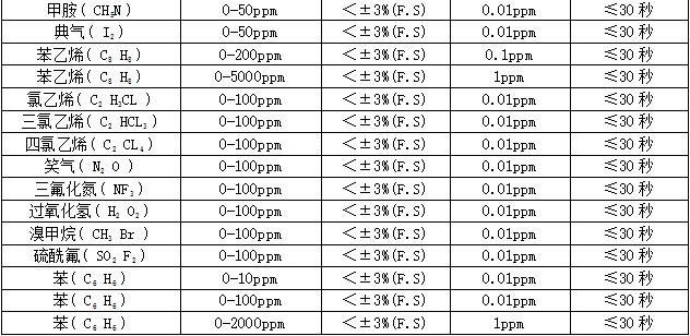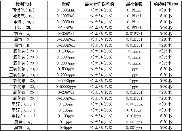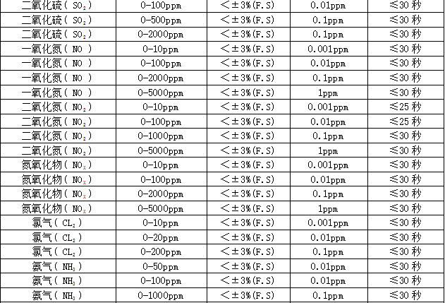 分 辨 率:0.01ppm或0.001ppm(0~10 ppm);0.01ppm(0~100 ppm),0.1ppm(0~1000 ppm),1ppm(0~1000 ppm以上),0.01毫克/升(0~200%毫克/升)、0.1%LEL、0.01%Vol、0.001%Vol。