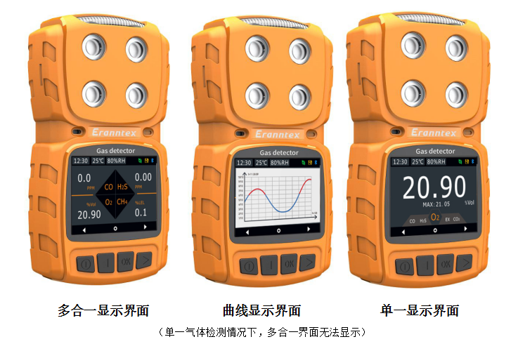●可以選配同時檢測1~4種氣體,單位自由切換單位可選:PPM、mg/m3、Vol%、LEL%、PPHM、ppb、mg/L