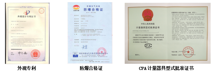 ●防水濺、防塵、防爆、防震,本安電路設計,抗靜電,抗電磁干擾,通過國標測試和CPA計量器具型式認證