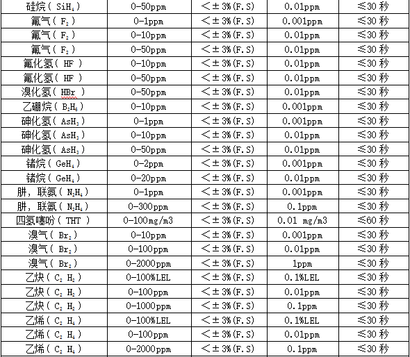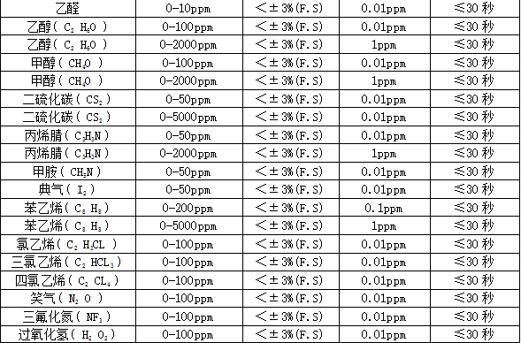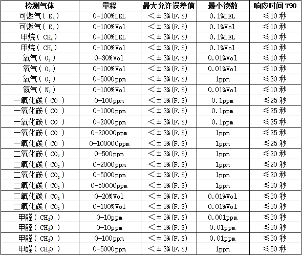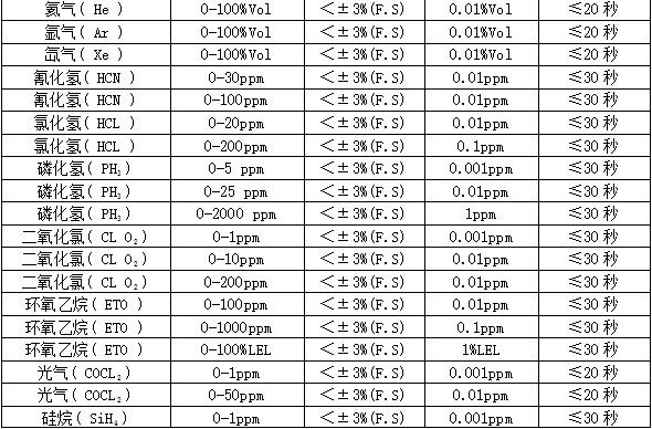 分 辨 率:0.01ppm或0.001ppm(0~10 ppm);0.01ppm(0~100 ppm),0.1ppm(0~1000 ppm),1ppm(0~1000 ppm以上),0.01毫克/升(0~200%毫克/升)、0.1%LEL、0.01%、0.001%Vol。