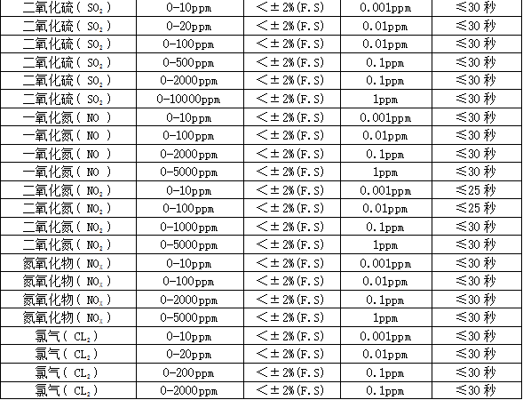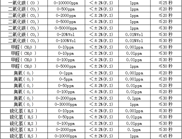 分 辨 率:0.01ppm或0.001ppm(0~10 ppm);0.01ppm(0~100 ppm),0.1ppm(0~1000 ppm),1ppm(0~1000 ppm以上),0.01毫克/升(0~200%毫克/升)、0.1%LEL、0.01%、0.001%Vol。