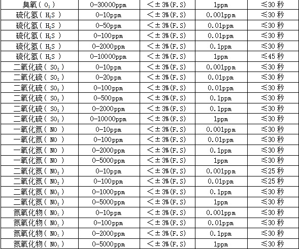分 辨 率:0.01ppm或0.001ppm(0~10 ppm);0.01ppm(0~100 ppm),0.1ppm(0~1000 ppm),1ppm(0~1000 ppm以上),0.01毫克/升(0~200%毫克/升)、0.1%LEL、0.01%Vol、0.001%Vol。