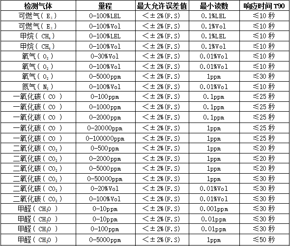 響應(yīng)時間:T90≤20秒重 復(fù) 性:≤±2%不確定度:≤±2%