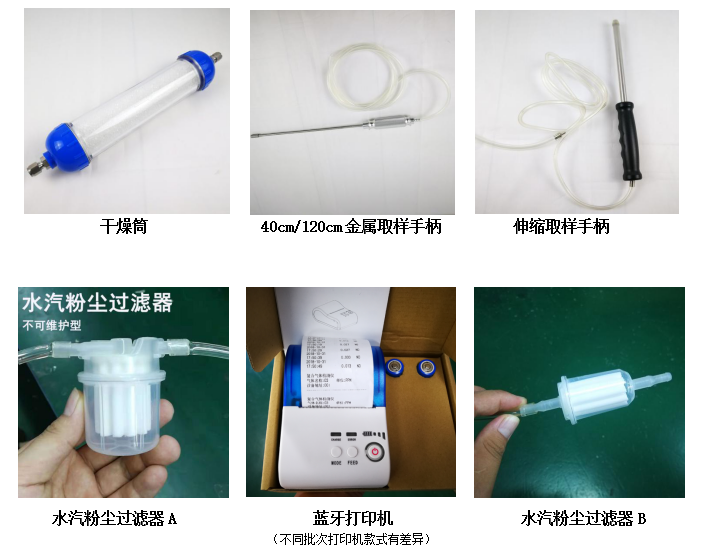 標準附件:說明書、合格證、保修卡、USB充電器(含數(shù)據(jù)線)、高檔鋁合金儀器箱 、內(nèi)置濕度粉塵過濾器 、40cm不銹鋼采樣手柄(1米軟管,帶粉塵過濾器,不可伸縮)